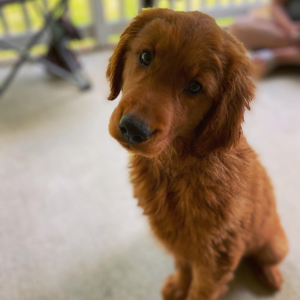 Golden Retrievers require a substantial amount of grooming in order to maintain their thick and lustrous coat. Daily brushing will help prevent knots and tangles and will reduce the amount of fur that accumulates around your home. We recommend a professional groom every 4 to 6 months to make sure you are removing all of the dead undercoat and for a good bath. Your puppy’s nails will require regular trimming if they are not worn down naturally through outside play and activity. We recommend trimming nails every 4 to 6 weeks as necessary